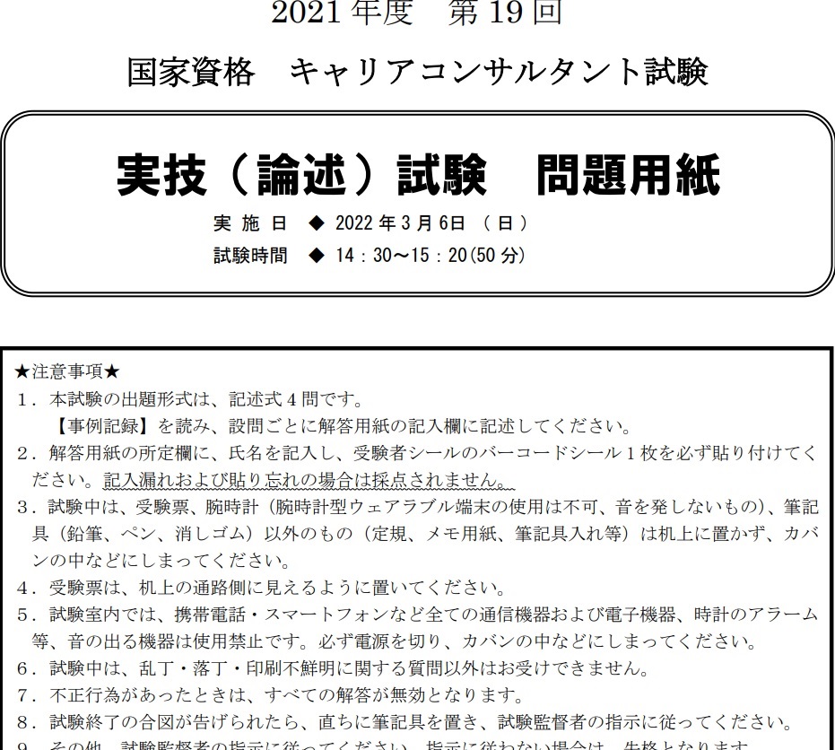 第19回国家資格キャリアコンサルタント学科・論述試験を受験された皆様、お疲れ様でした!